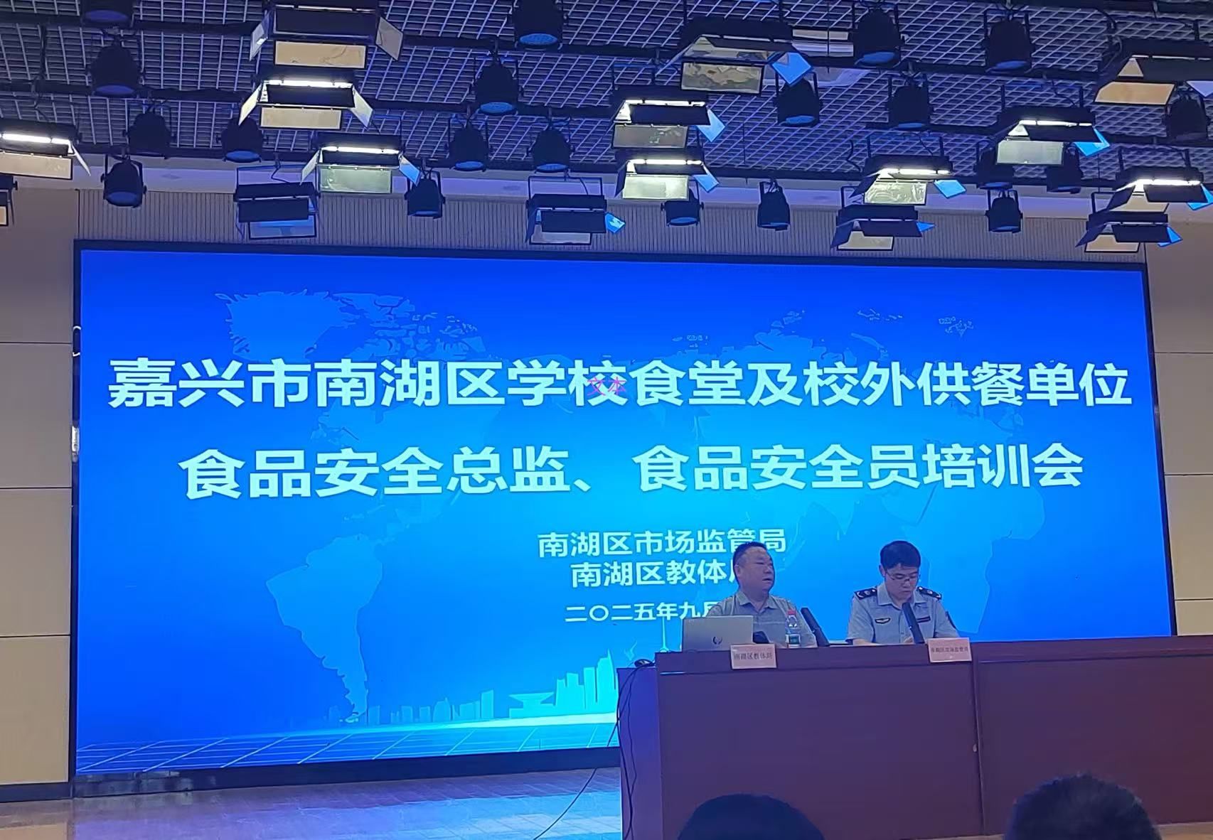 本次培训由南湖区市场监督管理局与南湖区教体局联合举办,是南湖区强化秋季开学校园食品安全工作的重要举措。培训内容紧扣当前学校食品安全管理的实际需求,围绕相关法规文件,重点解读了食品安全总监和食品安全员的职责要求、风险管控机制建立、工作制度落实以及食品安全事故应急处置流程等关键环节。